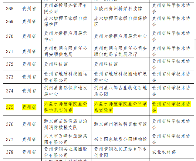 11月8日,中国科学技术协会发布了《中国科协办公厅关于2021-2025年第一批全国科普教育基地补充认定名单的公示》。六盘水师范学院生命科学系实验室受贵州省科学技术协会推荐,被中国科学技术协会拟认定为全国科普教育基地。(供稿/徐超 编辑校对/徐超 审核/王家理)