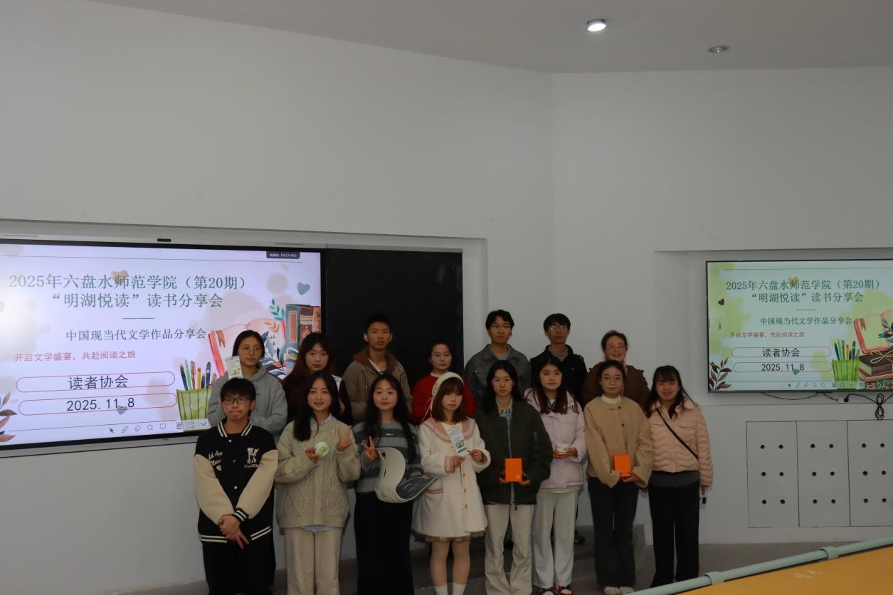 10月8日,六盘水师范学院读者协会于博学楼110教室举办第20期“明湖悦读”中国现当代文学作品读书分享会。本次活动以“读经典、谈收获、共成长”为主线,既是读者协会搭建文学交流桥梁、凝聚阅读力量的重要实践,也深度契合图书馆推广全民阅读、厚植校园文化底蕴的核心使命,旨在为师生打造现当代文学交流平台,激发文学探索兴趣,让优秀文学文化在校园中得以传承与延续。