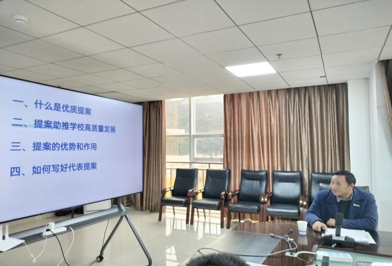 杨磊结合实例,从什么是优质提案、提案助推学校高质量发展、提案的优势和作用、如何写好优质提案四个方面进行了讲解。