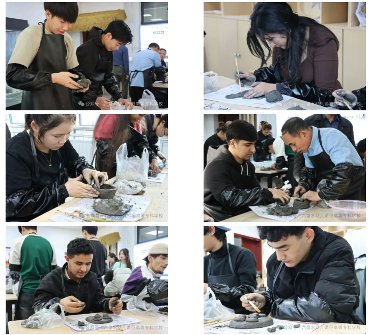 在沉浸式体验环节,留学生们在六盘水幼专杨建华副教授带领下,走进民族民间美术工作室,与该校艺术系师生代表一起共同解锁盘州砂陶的独特魅力。揉泥、塑形、绘制……大家动手参与砂陶创作的每一个环节,在指尖流转的陶土中,感受艺术创作的乐趣,也深深沉醉于六盘水民族文化与中华传统文化交融的独特韵味里。