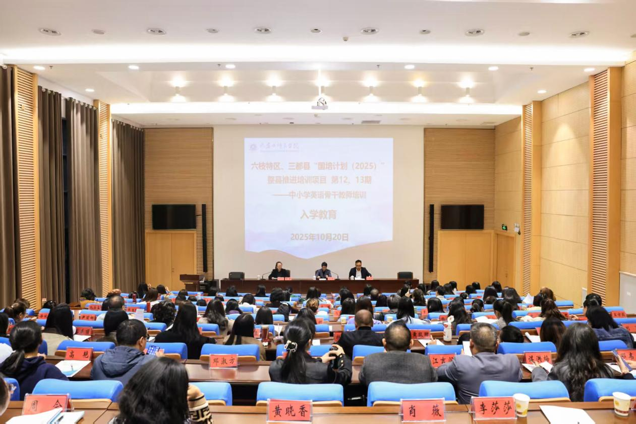 10月20日,六枝特区、三都县“国培计划(2025)”整县推进培训项目第十二期小学英语骨干教师培训和第十三期初中英语骨干教师培训入学教育在学校明道讲堂举行。