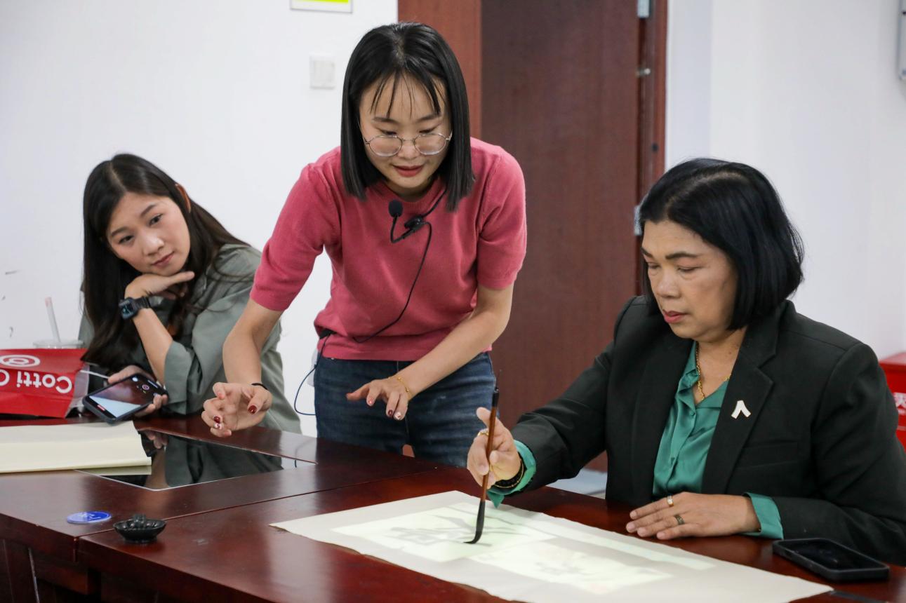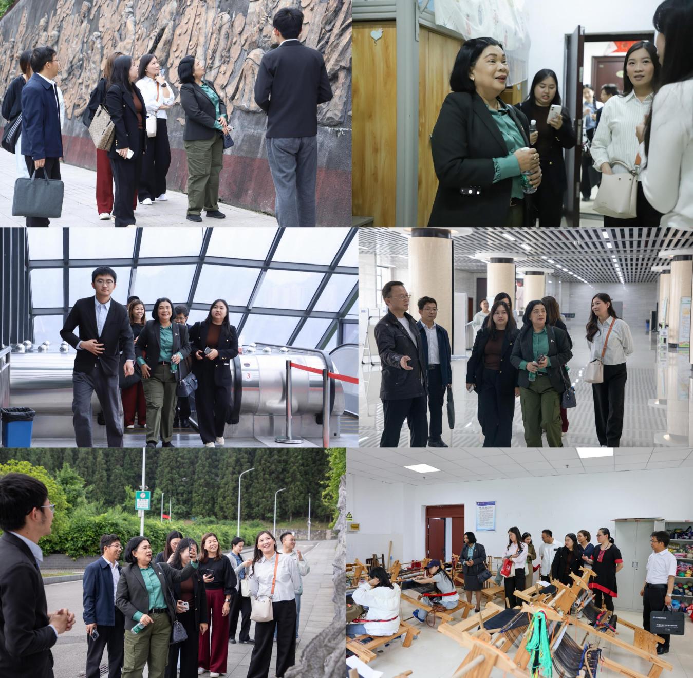 The visiting delegation from Rayong Provincial Education Office also inspected the campus cultural construction, visited the library, international student dormitories, international student classrooms, etc., and observed the Chinese language teaching classes for international students in depth.