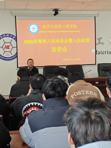 为积极响应国家号召,落实国家征兵工作部署,激发大学生投身国防、报效祖国的热情,化学与材料工程学院于11月26日在奥学楼420会议室举行了2026年度春季大学生入伍动员会暨入伍政策宣讲会。会议特邀学校党委学生工作部副部长匡其羽为同学们进行政策解读与动员。