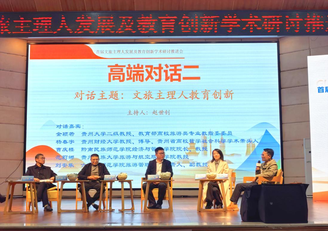9日下午“文旅主理人教育创新”高端对话如期开展,对话由安顺学院旅游学院院长赵世钊教授主持,贵州大学二级教授、教育部高校旅游类专业教指委委员金颖若,贵州财经大学杨春宇教授、六盘水师范学院刘安乐博士等6位嘉宾论道交锋,为产业升级注入思想动能。会场气氛热烈、融洽。