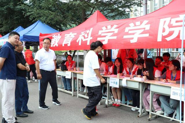 上午8点,教育科学学院迎新工作人员在接待点准备就绪,随着新生的到来,迎新工作人员分工明确,按照网络注册报到、核验新生提供的材料、发放物资材料三个板块的先后顺序,帮助新生快速完成报到流程。同时,迎新工作人员对新生提出的问题和疑惑进行耐心解答,用实际行动诠释着教育科学学院以心换“新”的迎新理念。
