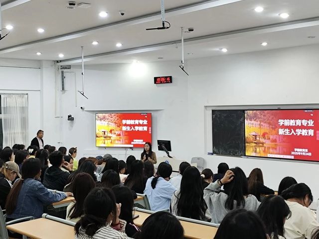 为帮助新生快速适应大学学习生活、明确专业方向与发展路径,9月24日晚上,学前教育系在博学楼110教室开展新生入学教育,2025级学前教育和2025级学前教育专升本全体同学参会。