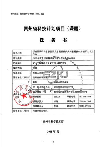 近日,我校申报的“煤炭开采矿山水害防治及水资源保护贵州省科技创新领军人才工作站”省级科技平台成功获批。