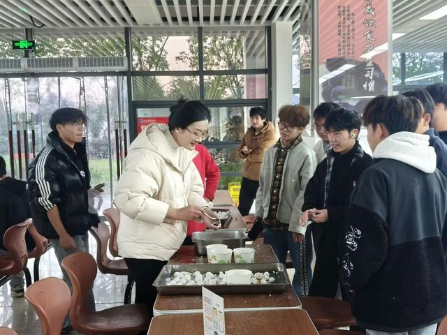 活动现场,同学们分组协作,揉面、分团、包馅、搓圆……,随着一双双巧手的捏合搓转,一颗颗圆润饱满的汤圆渐渐摆满餐盘。汤圆下锅后,热气升腾,香甜四溢。同学们围坐在一起,品尝着自己亲手制作的汤圆,软糯香甜的滋味洋溢在唇齿之间,更温暖在每个人的心头。“没想到自己包的汤圆这么好吃,过程也特别有意思!”一位同学笑着说道。