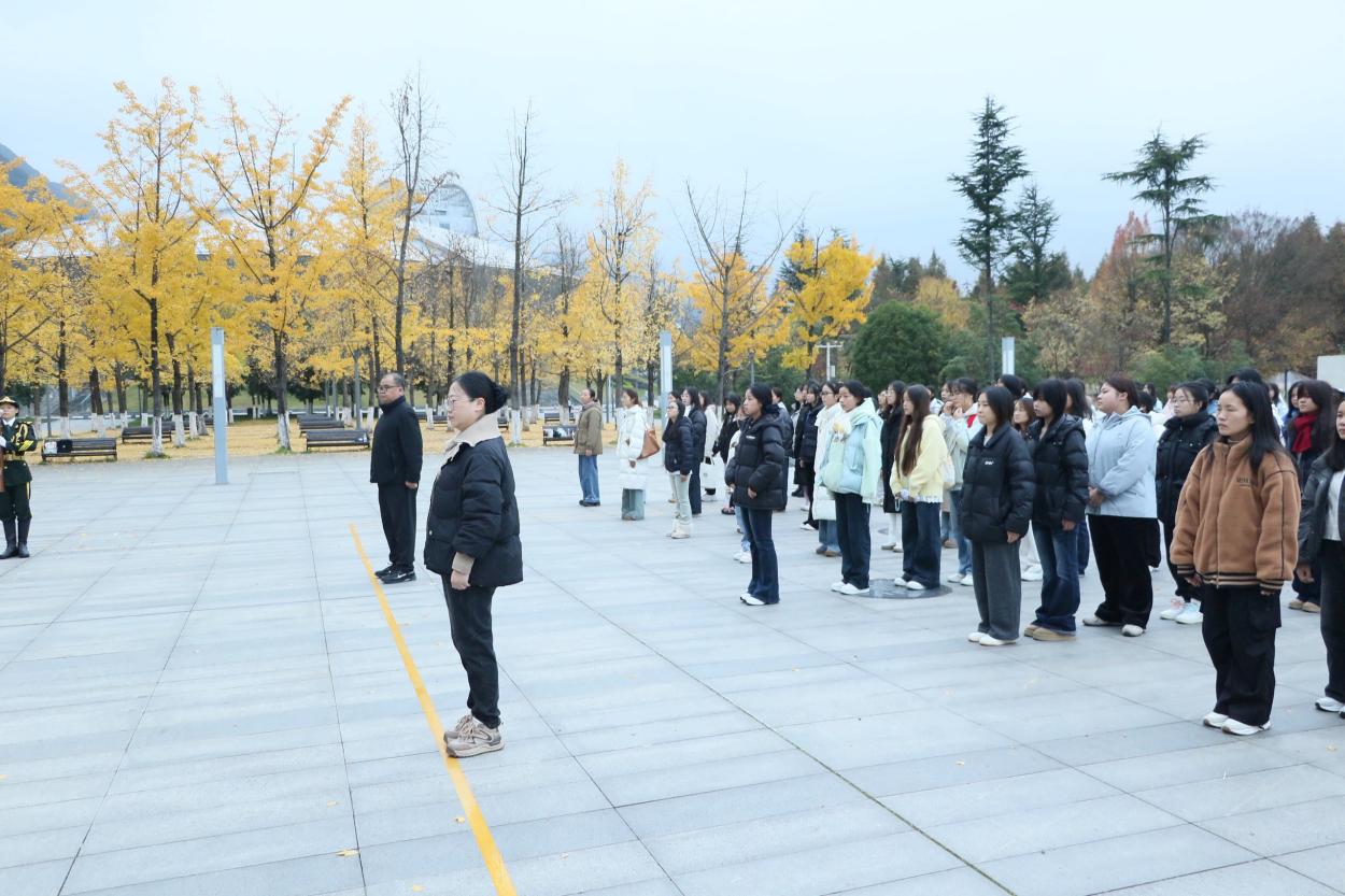 11月17日,马克思主义学院于知行广场举行爱国主义教育升旗仪式。学院党委书记杨永贵、党委副书记蔡娟、学生科科长韩玄哲,及全体学生参加了升旗仪式。仪式由思想政治教育专业2024级学生龙丹丹主持。