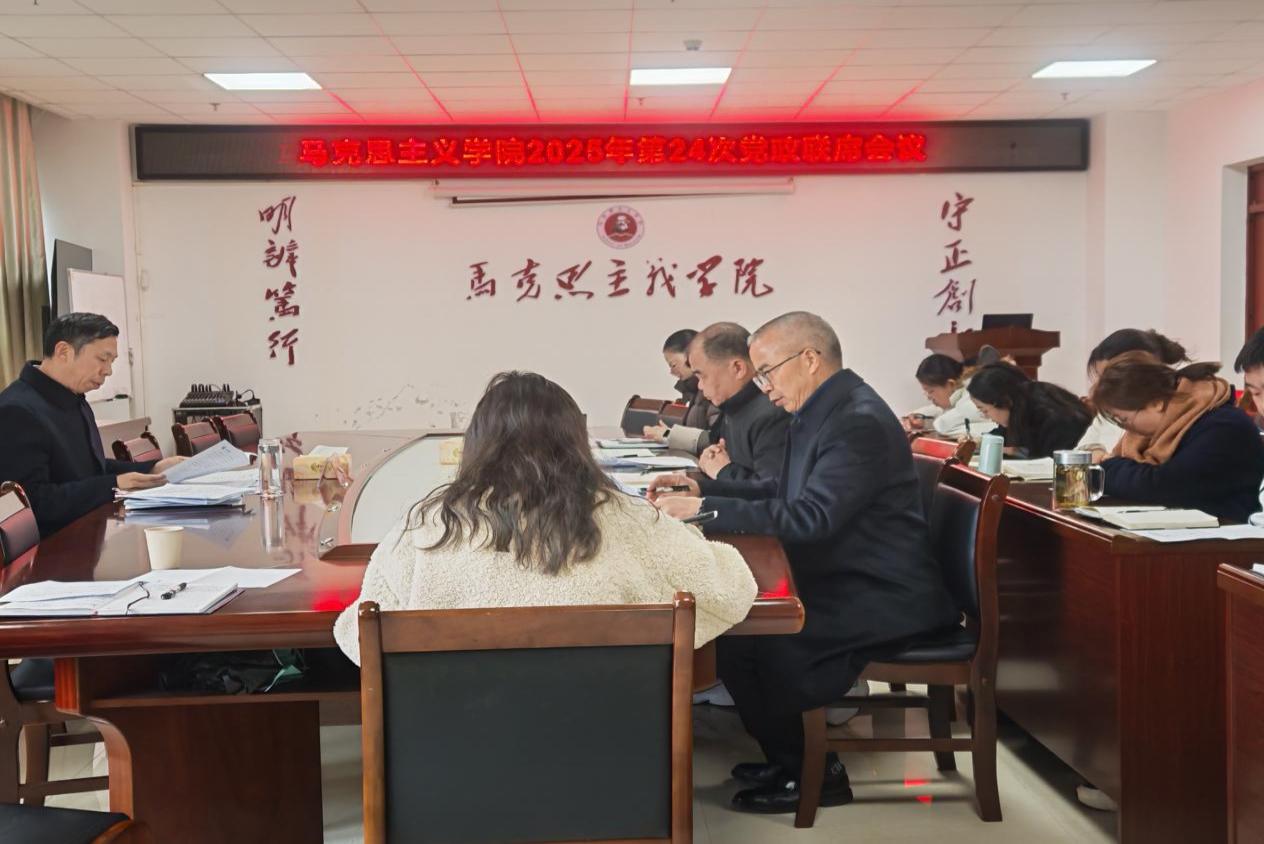 11月21日,学校校长陈应武莅临马克思主义学院,参加学院党政联席会议,就学院相关工作推进情况开展指导。陈应武校长对会议研究的学院建设、学科科研、大中小学一体化思想政治教育等重点事项给予高度关注,结合学校整体发展布局,对学院日常管理、科研团队建设等提出针对性指导建议。陈应武强调,马克思主义学院是学校思想政治教育的主阵地,学院教师要深耕专业,切实发挥学科优势与师资力量。马克思主义学院要对照重点马院建设标准,抓好各项建设工作。