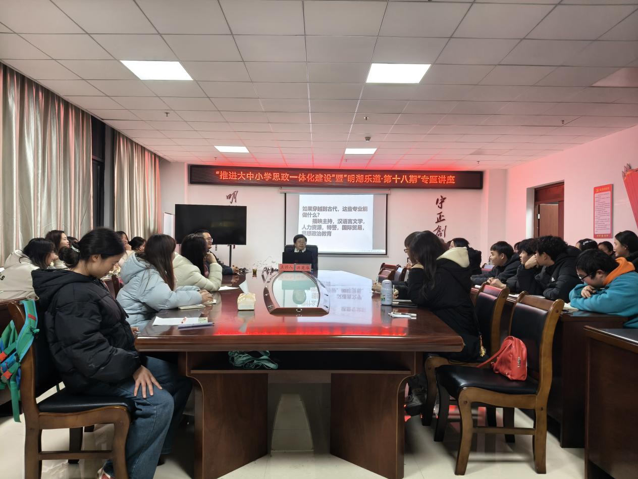 12月14日,为深入贯彻落实国家关于建设高质量教育体系的战略部署,积极探索大中小学协同育人新机制,马克思主义学院“推进大中小学思政课一体化建设”专题讲座暨“明湖乐道”讲坛系列讲座第十八期在奥学楼1008室成功举办。本次讲座由马克思主义学院杨晋副教授主持,特邀六盘水市第二十四中学高级教师、贵州省中小学省级骨干教师洪英华担任主讲嘉宾。