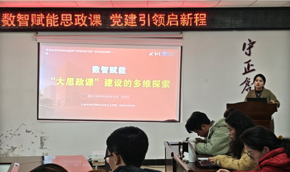 为深化思政课教学改革创新,推动人工智能技术与思想政治理论教学深度融合,推进智慧马院建设,3月9日下午,超星集团思政部负责人郑思雨主任在马克思主义学院作“数字赋能‘大思政课’建设的多维探索”专题培训会。学院副院长周才金主持会议,全体思政课教师及教学管理人员参会。