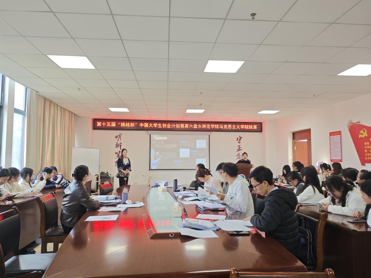 3月25日下午,第十五届“挑战杯”中国大学生创业计划竞赛六盘水师范学院马克思主义学院院赛在奥学楼1008会议室顺利举办。本次赛事从34支队伍中线上评审遴选出14个项目参加线下院赛答辩,推荐出7支团队备战校级赛事。