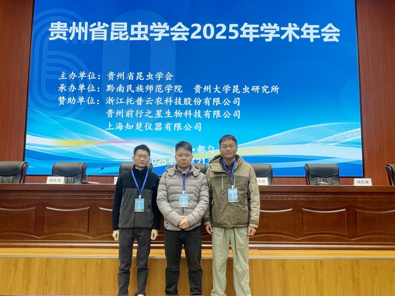 2025年11月21-23日,我院苏成元、赖盛昌和黄贵强三位老师前往都匀市参加由贵州省昆虫学会主办,黔南民族师范学院和贵州大学昆虫研究所承办的“贵州省昆虫学会2025年学术年会”。苏成元老师作了题为“六盘水地区蝴蝶种群中Wolbachia专性WO噬菌体的超级感染及其orf7基因重组模式研究”的大会报告,赖盛昌老师作了题为“不同地理种群的坡面方胸小蠹与镰孢菌的共生关系研究”的大会报告。(供稿/黄贵强 编辑校对/尚雪英 王雪雪 审核/王家理)