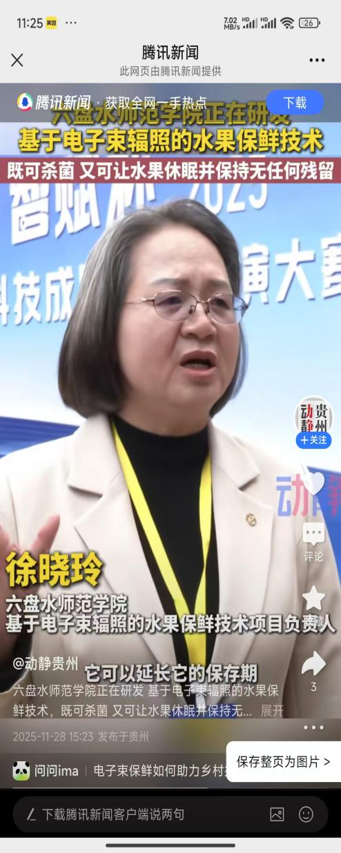 徐晓玲博士研究团队还致力于将电子束辐照技术应用于贵州刺梨、水城羊肉粉、贵州二黄姜的保鲜贮藏,降低烂腐率、延长保质期,研究团队还积极联合相关企业推进电子束辐照技术在贵州的产业化应用,以科技赋能“黔货出山”,助力乡村振兴。(供稿/徐晓玲 编辑校对/尚雪英 王雪雪 审核/王家理)