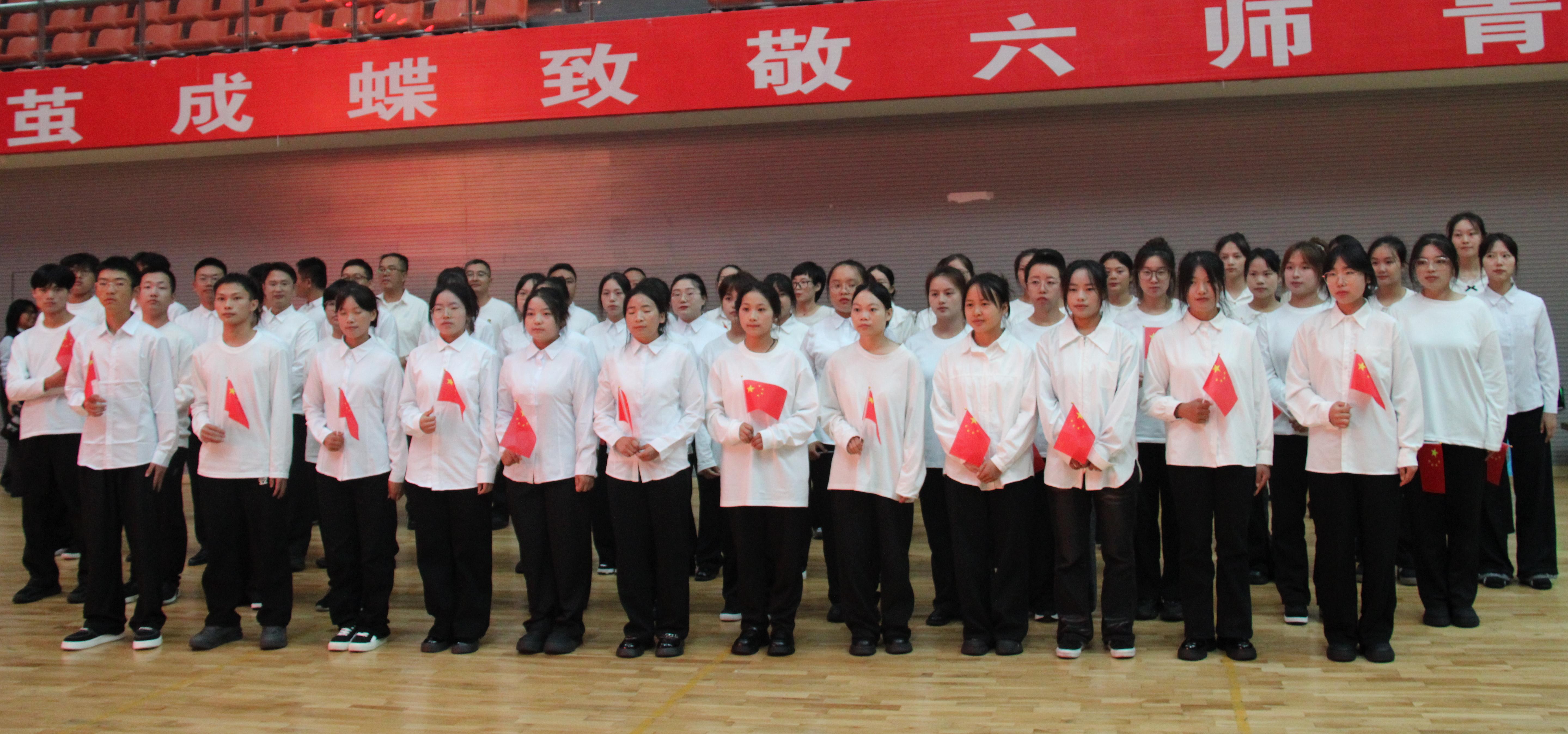9月26日下午,六盘水师范学院迎国庆合唱比赛在体育馆开赛,生物科学与技术学院党委书记王家理,团委书记陈艳艳及生物科学系教师孔宇、丘日光带领学生代表队参赛,以歌献礼新中国成立76周年,现场氛围热烈。