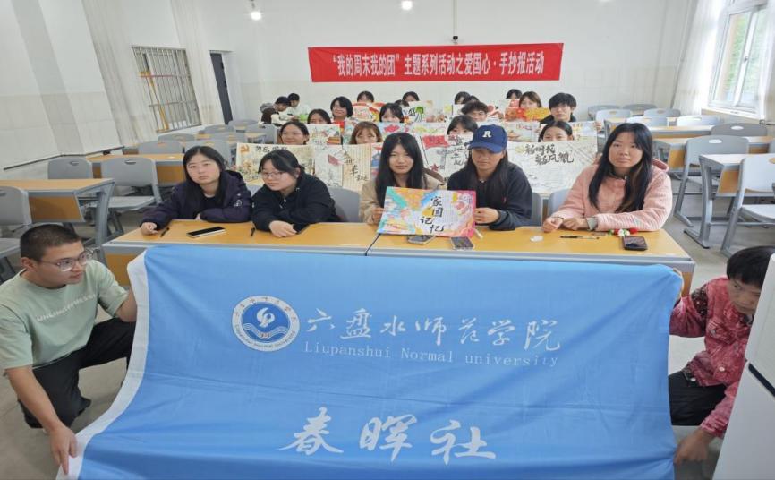 2025年9月27日,春晖社围绕“感恩家国、绘出温暖”主题,组织97名成员进行线上初赛选拔出20名决赛人员于六盘水师范学院博学楼104线下开展爱国心·手抄报活动。