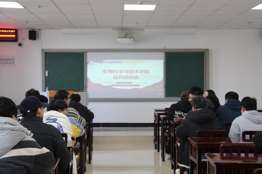 2025年11月21日下午,六盘水师范学院生物科学与技术学院征兵动员大会在奥学楼315召开。本次大会由学生工作部副部长匡其羽主讲,辅导员王雪雪、张启文及全体征兵学生参加,现场氛围热烈而庄重。