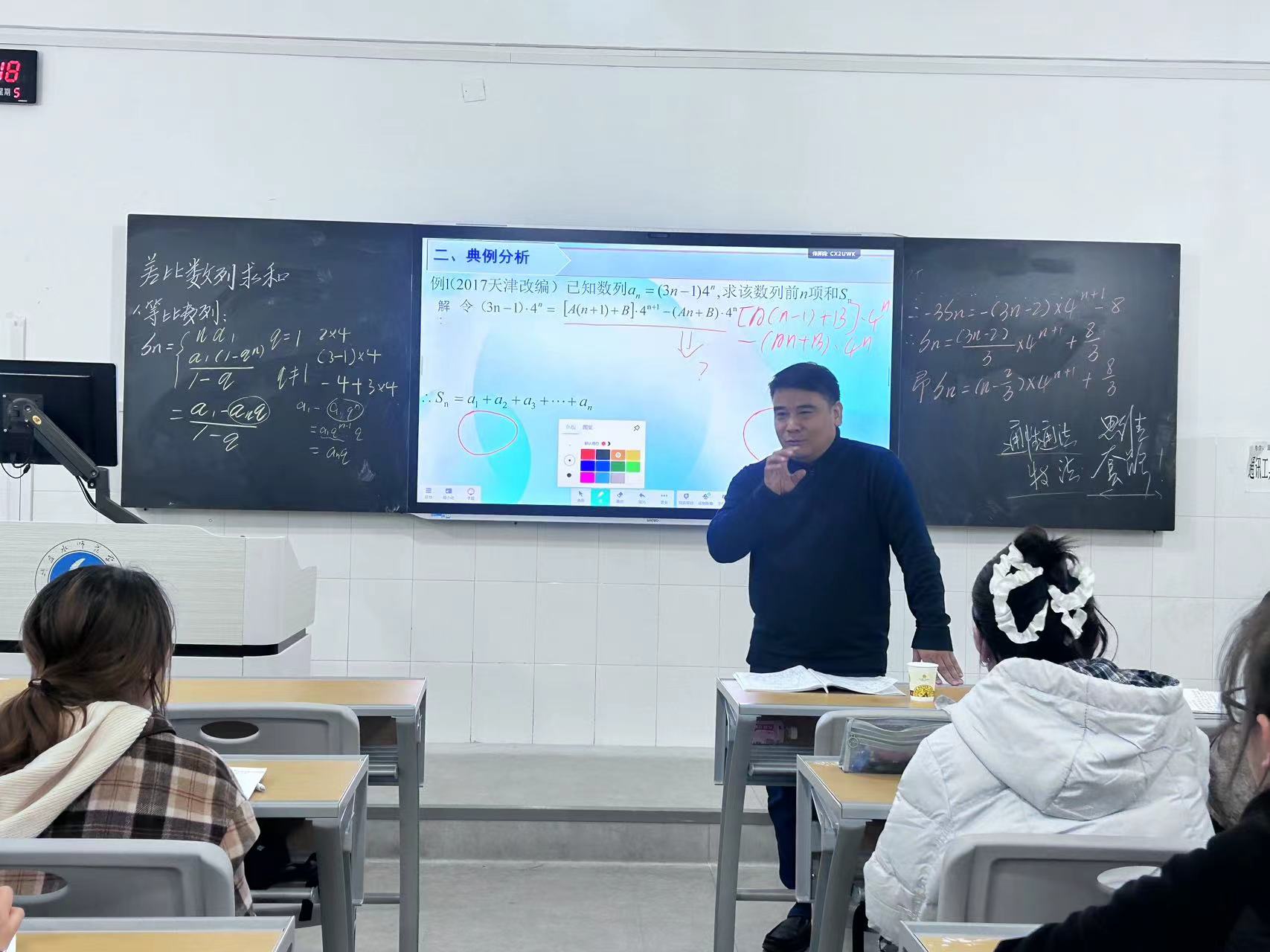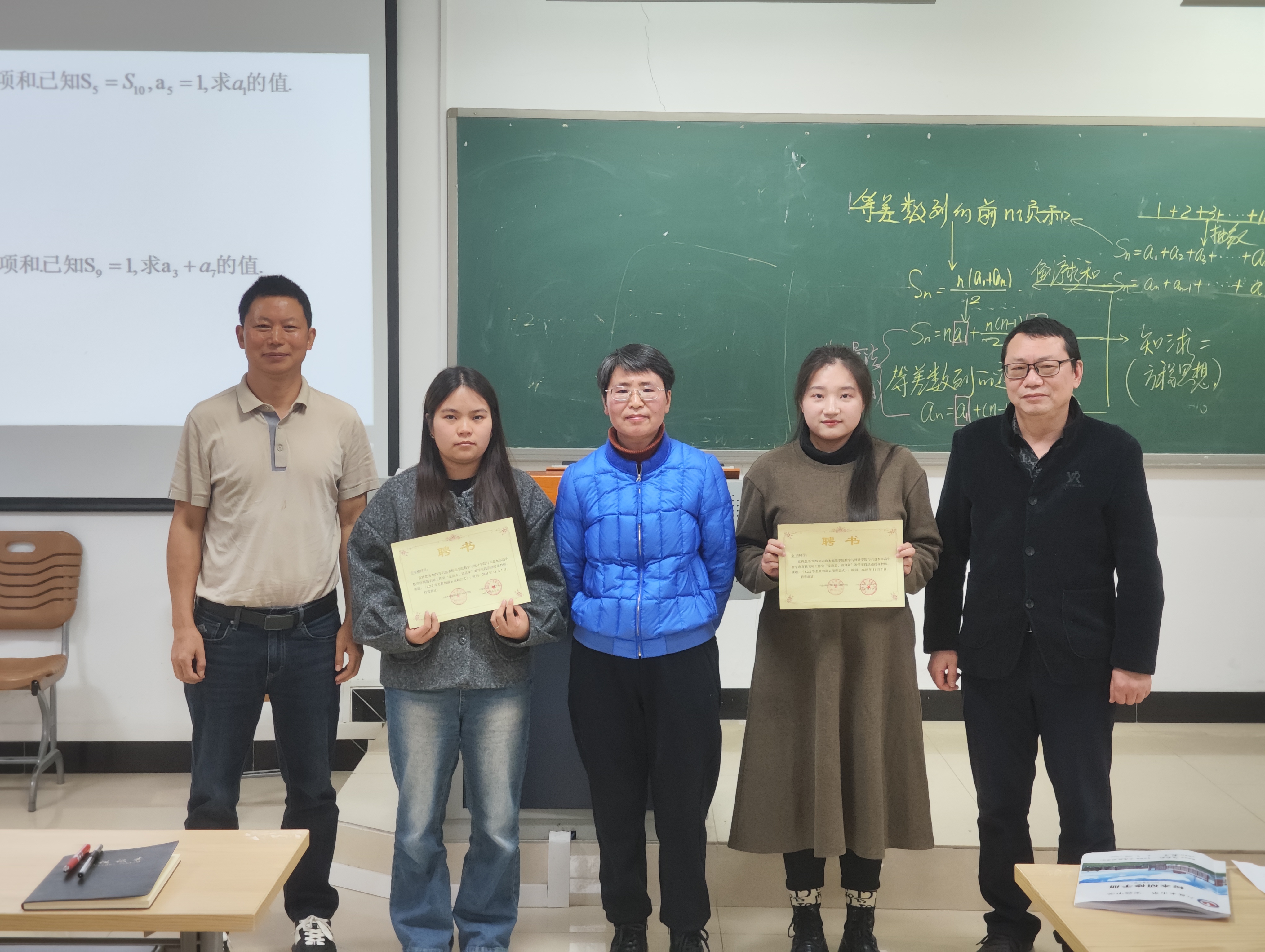 系列活动中,2022级学生金丹、2025级专升本学生王家娥与高中一线教师同台开展“等差数列前n项和公式”同课异构教学。两位同学分别以高斯求和故事、特殊数列规律探究为切入点,运用倒序相加法推导公式,通过小组讨论、阶梯式追问等方式引导学生自主探究,展现了扎实的专业基础与初步的教学实践能力。