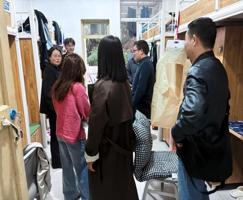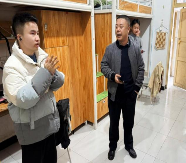 走访过程中,院领导与同学们亲切交流,细致询问大家的返校行程、假期生活感受与新学期学习规划,认真倾听同学们的需求与建议,叮嘱同学们快速调整作息,以饱满的状态投入到新学期的学习生活中。老师们逐一排查宿舍水电、消防、卫生等安全隐患,提醒同学们提高安全防范意识,遵守宿舍管理规定,营造安全、整洁、文明的住宿环境。