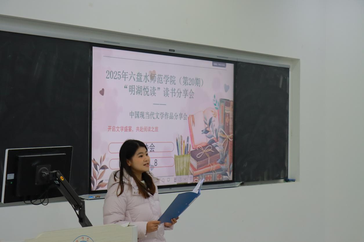 2025年10月8日,六盘水师范学院读者协会于博学楼110教室成功举办第20期“明湖悦读”中国现当代文学作品读书分享会。本次活动以“读经典、谈收获、共成长”为主线,既是读者协会搭建文学交流桥梁、凝聚阅读力量的重要实践,也深度契合图书馆推广全民阅读、厚植校园文化底蕴的核心使命,旨在为师生打造现当代文学交流平台,激发文学探索兴趣,让优秀文学文化在校园中得以传承与延续。