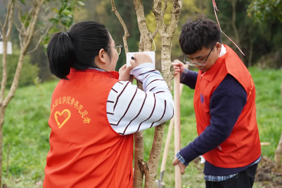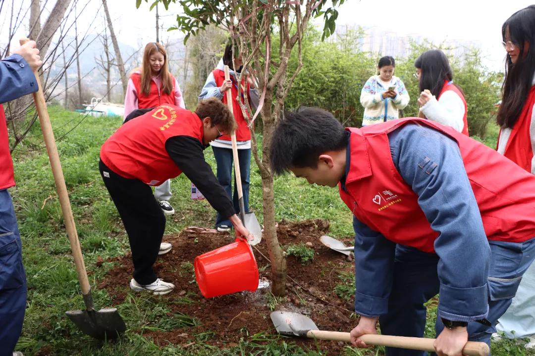志愿者们三五结对,分工协作,挥锹铲土、扶苗浇水,亲手将一棵棵树苗扎根沃土。在劳动中感知绿色的珍贵,用行动践行环保责任。
