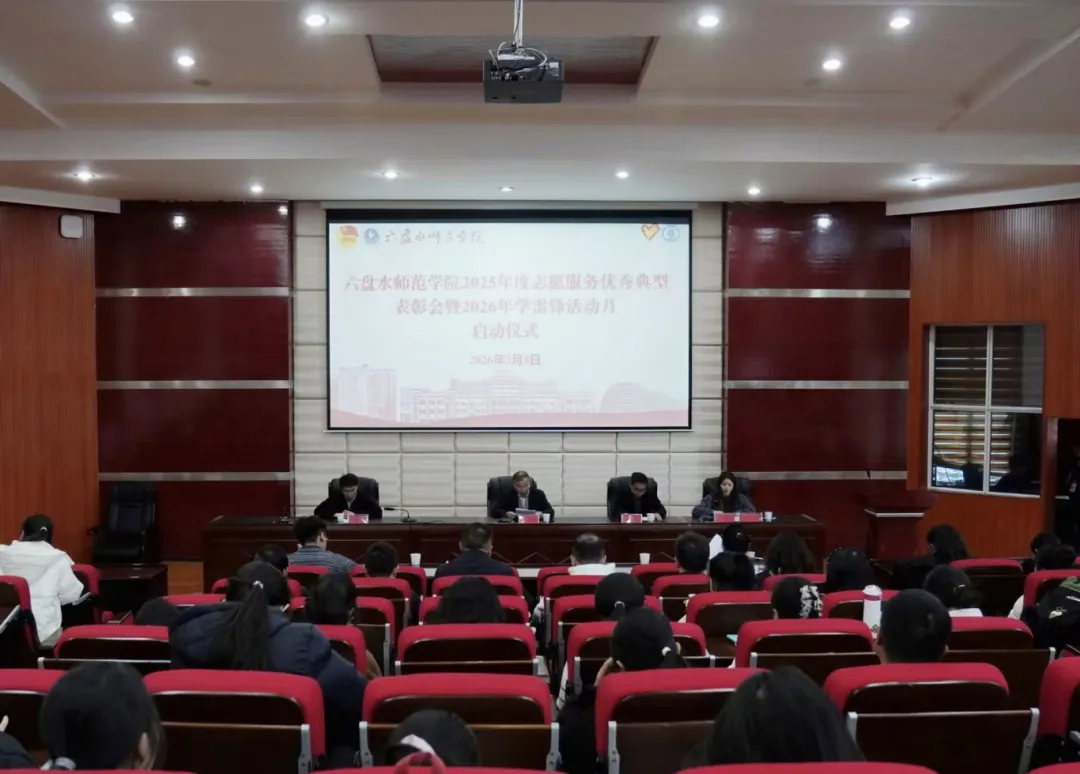 3月5日,六盘水师范学院2025年度志愿服务优秀典型表彰大会暨2026年学雷锋活动月启动仪式在博学楼117知行讲堂举行。校团委书记陈文辉,学校相关部门负责人,各学院分管学生工作院领导、团委负责人,优秀志愿服务典型代表和志愿者代表参加会议。