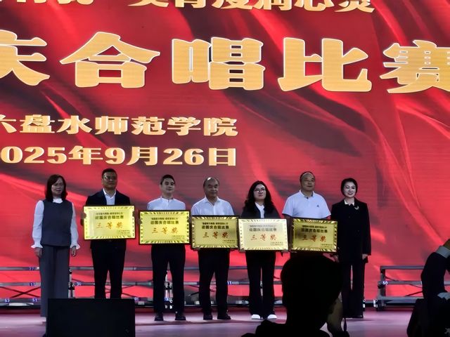 9月26日,六盘水师范学院“强国复兴有我 美育浸润心灵“迎国庆合唱比赛在全场大合唱《歌唱祖国》中落幕。体育学院师生合唱队以压轴之姿登场,凭借《祖国不会忘记》《东方红》两首经典红歌的深情演绎,在14支参赛队伍中跻身第五名,斩获三等奖,用歌声展现了体院人“能文能武”的别样风采。
