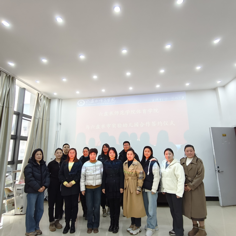 为深化校地协同育人,精准对接体育人才培养与地方学前教育发展需求,2025年12月18日,六盘水师范学院体育学院与六盘水市实验幼儿园正式签署文化实践合作协议,以师资共享、课程共建、人才共育、文化实践为核心,携手构建“高校引领-实践赋能-文化铸魂-成果反哺”的良性发展体系。体育学院院长莫琰、市实验幼儿园党支部书记兼园长何文芹及双方教师代表出席签约仪式。