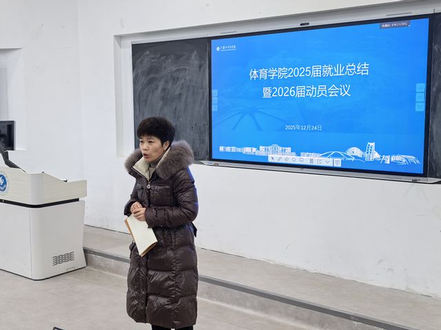 为全面总结就业工作经验、统筹推进新一届毕业生就业服务,12月24日,体育学院在博学楼110教室召开2025届就业总结暨2026届就业动员大会。学院党委书记张凌峰、院长莫琰,党委副书记谷小伟、副院长常丽娟,教学科研科、体育教育系及学生科相关教师与应届毕业生共同参会,会议由谷小伟主持。