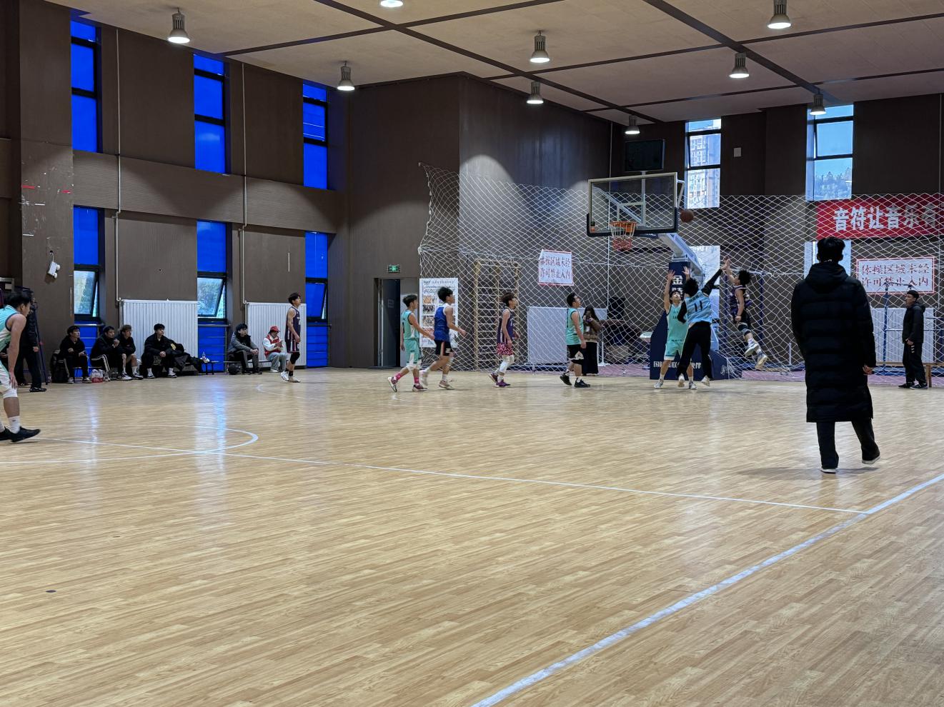 闭幕式于下午18:00正式开始。裁判长首先宣布了本次篮球联赛的最终比赛成绩,对各参赛队伍在赛场上的出色表现给予了高度肯定。随后,学院领导为获奖集体颁发了荣誉证书及奖品,以表彰他们在比赛中展现出的团结协作、奋勇拼搏的体育精神。接过奖牌时,2022级联队的队员笑着说:“每天晚自习后的加练没白费,更开心的是认识了其他班的兄弟!”。未能晋级决赛的队伍也在台下热情鼓掌,不少队员互相拍着肩膀喊着“明年再战”。