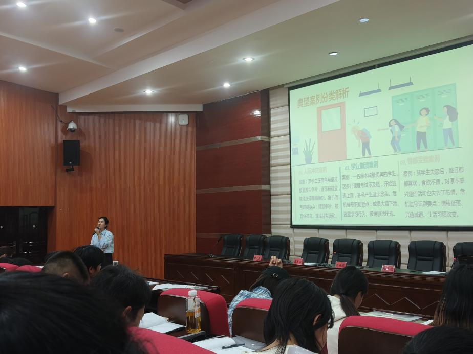 2025年4月21日、24日晚,党委学生工作部在博学楼117教室成功举办第七期心理委员赋能培训。本次培训以"深化朋辈互助职能,筑牢心理健康防线"为主题,通过专题讲座、技能实训、案例研讨等形式,系统提升全校200余名心理委员及60余名同辈心理互助协会成员的专业素养。