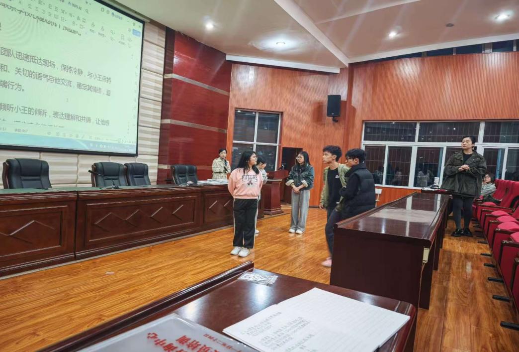 双师联动开展"理论+情景+实战"培训,郑元媛老师传授"倾听-共情-积极关注"沟通模型,付小庆老师通过角色扮演强化心理委员谈话技巧。现场设置学业压力、人际冲突等模拟场景,学员们演练"正念冥想""渐进式肌肉放松"等即时干预技术,掌握稳定当事人情绪的专业方法。