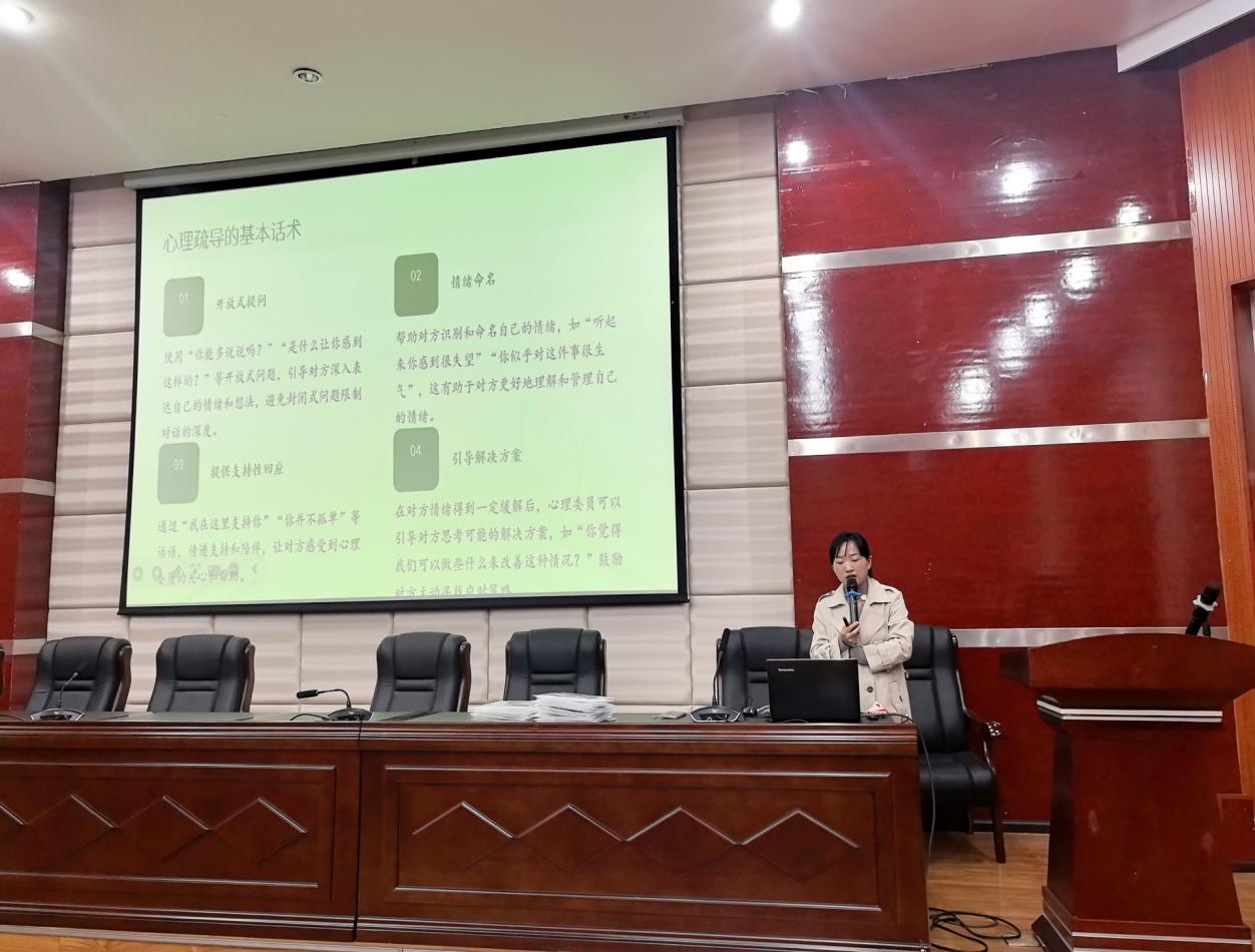 党委学生工作部张艳蓉副处长、匡其羽副处长出席开幕式并致辞。强调了心理委员作为校园心理健康网络"神经末梢"的重要性。张艳蓉副处长指出:"心理委员需以专业和温度守护同学心理健康,成为同学们值得信赖的心灵伙伴。"心理咨询中心主任郑元媛与专职心理咨询师付小庆全程主导培训设计与实施,确保内容紧贴学生实际需求。