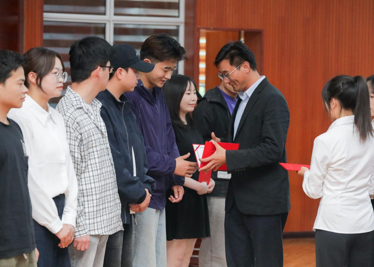 紧接着匡其羽宣读2025年获邦达奖学金学生名单,贵州邦达公司总经理蒋翔、人事部主任刘全为学生颁发荣誉证书,计算机科学学院软件工程2022级学生吴敏作获奖发言。