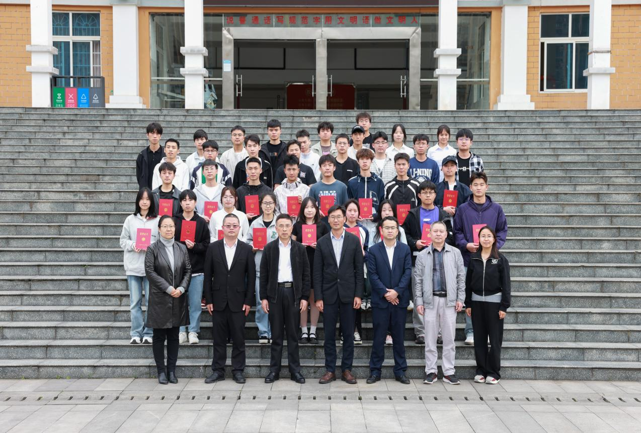 仪式上,匡其羽代表学校向贵州邦达能源开发有限公司表示诚挚感谢。他向贵州邦达公司传达,去年受邦达奖学金资助的25名学生已全部顺利毕业,其中曹盼、李仁东、令狐绍欢3名同学考上研究生继续深造,梅德宇同学加入贵州邦达公司,开启职业新征程。今年获奖的25名学生均为品学兼优的好学生,其中刘俊红、王侗侗、谭江辉3名同学已与该公司签订就业协议,成为企业储备人才。这一成果,既彰显了奖学金项目对学子成长的切实助力,更体现了企业与高校在人才培养中的深度协同。同时,他对获奖同学提出三点期望:一是立大志、明大德;二是成大才、担大任;三是怀感恩、勇奉献。