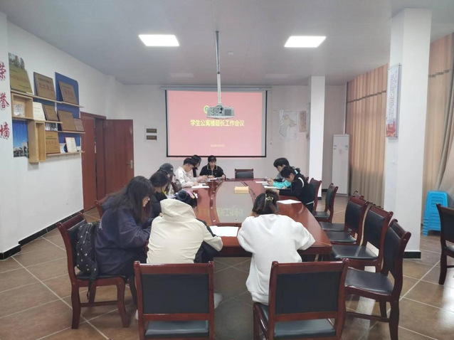 2023年10月18日,六盘水师范学院学生科在学生事务中心召开12栋学生公寓楼层长工作会议。学生处学生科工作人员、各公寓楼长和部分宿管员参加会议。
