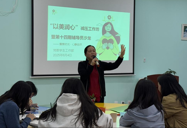 为进一步提升学校辅导员心理健康教育工作能力,将积极心理学深度融入学生工作实践,着力提升辅导员队伍心理健康水平与职业幸福感,2025年6月4日,党委学生工作部精心策划的“以美润心”减压工作坊暨第十四期辅导员沙龙在心理咨询中心顺利举行。本次活动由心理咨询中心主任郑元媛主持,我校全体辅导员参加。