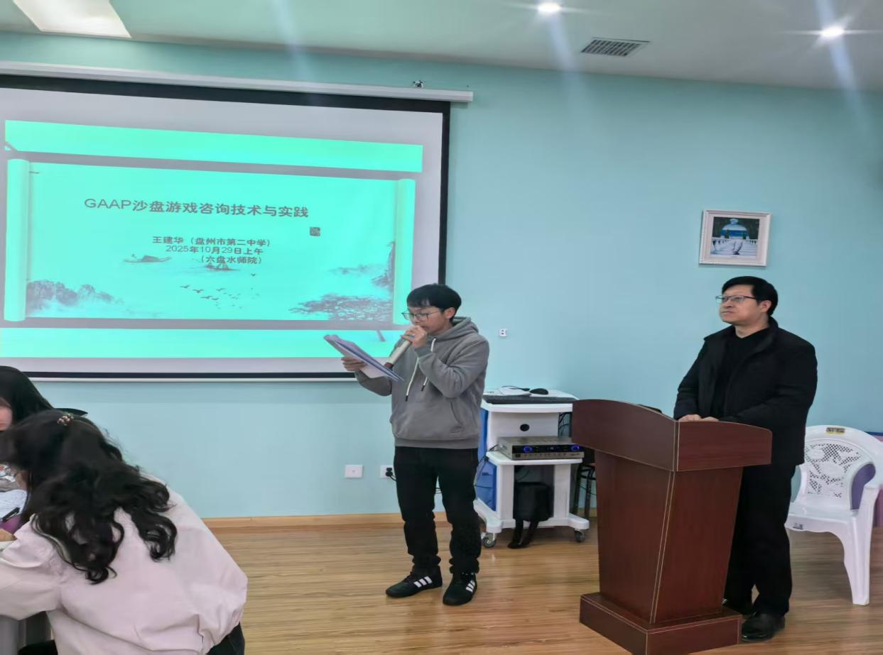 2025年10月29日,为深入推进“国培计划(2025)”整县推进培训项目实施,党委学生工作部心理咨询中心特邀市级心理健康教育专家王建华老师(国家二级心理咨询师、GAAP沙盘游戏咨询师),为六枝特区、三都县中小学心理健康专兼职教师开展《GAAP沙盘游戏心理咨询技术》专题培训。本次培训旨在强化区域教师非语言疗法应用能力,助力青少年心理问题识别与干预,共有50名参训教师及心理咨询中心专兼职心理咨询师郑元媛、付小庆、韦晓、苗芳共同参与学习。