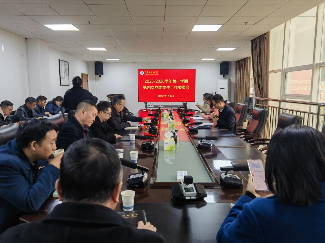 11月17日,学校召开2025-2026学年第一学期第四次党委学生工作委员会会议。会议由学校党委委员、副校长牛伟主持,党委学生工作委员会委员及相关人员参会。