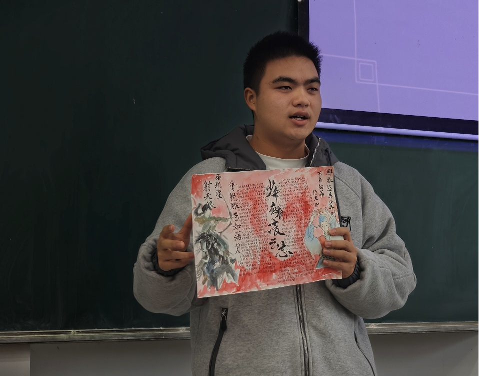 活动现场,同学们依次上台展示自己精心绘制的手抄报,分享绘制的人物故事、思想内涵和设计思路。参赛作品紧扣励志内核,事迹鲜活、感悟真切,绘制了我们熟知的榜样:在无声世界中吹响号角的江梦南、防微火护长明的消防英雄、“两弹元勋”邓稼先、勇于拼搏奋斗的奥运乒乓球混双金牌获得者“莎头”组合、中国女子田径运动员吴艳妮的励志故事、以卓越的军事才能备受敬仰的英雄人物霍去病、将逆境中的坚守与豁达化作文字的“诗佛”王维等等。