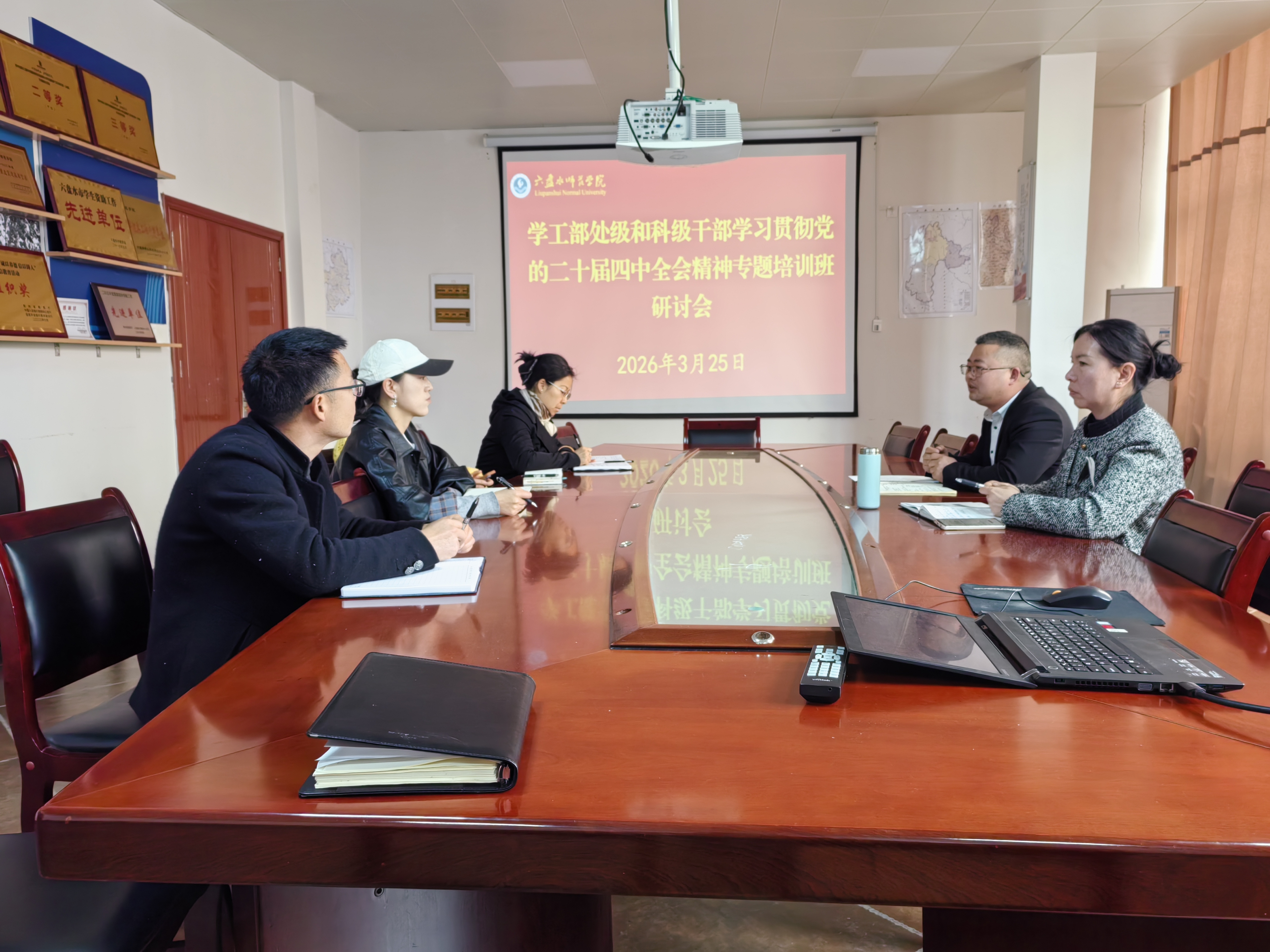 为深入学习贯彻党的二十届四中全会精神,根据学校党委统一部署,3月25日下午,党委学生工作部在学生活动中心会议室召开处级和科级干部学习贯彻党的二十届四中全会精神专题研讨会。会议由党委学生工作部副部长张艳蓉主持,部门全体处级、科级干部参加研讨。