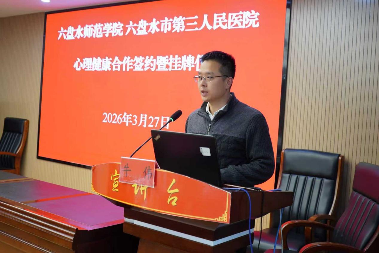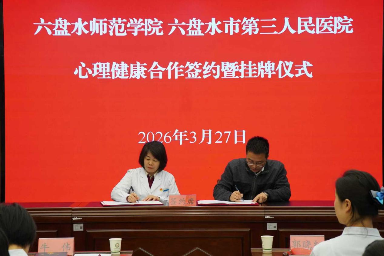 为深入贯彻新时代学生心理健康工作相关部署,构建全链条学生心理健康服务体系,3 月 27 日,六盘水师范学院党委委员、副校长牛伟率队赴六盘水市第三人民医院,双方签署心理健康服务合作框架协议,校院携手深化心理健康领域医教协同。
