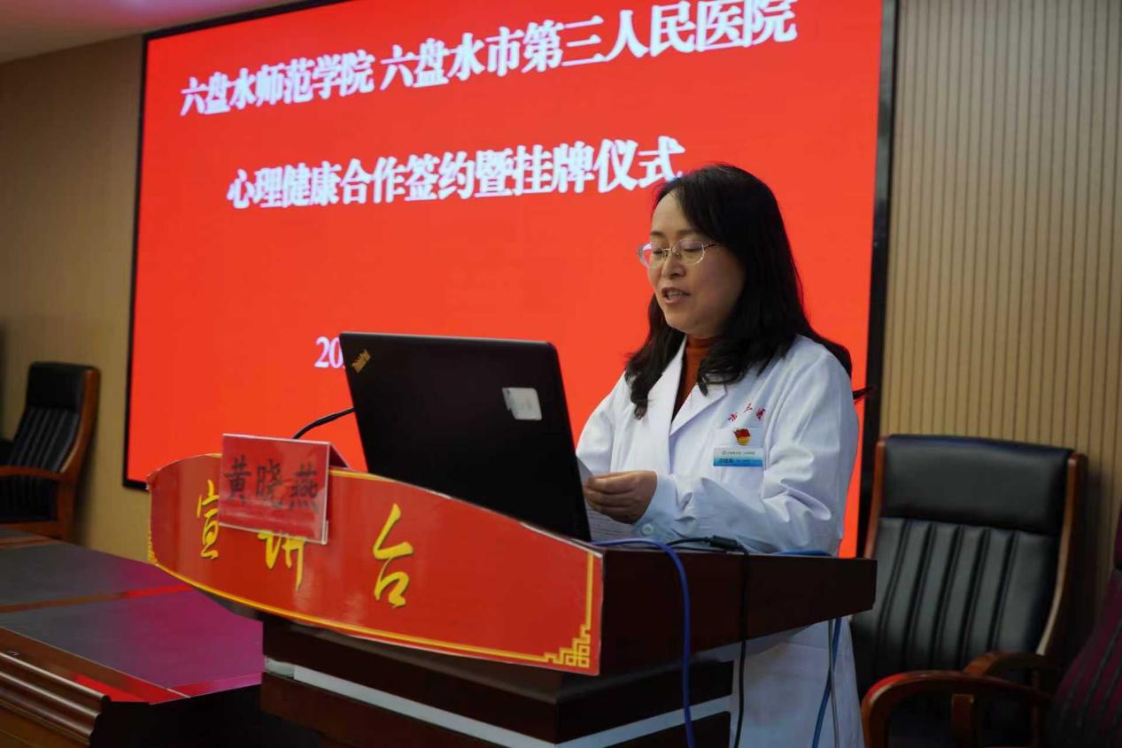 市第三人民医院党委副书记、院长郭晓红出席会议并讲话,医院党委委员、纪委书记黄晓燕主持会议。我校保卫处、党委学生工作部及心理咨询中心相关负责人,市第三人民医院相关科室负责人参加签约仪式。