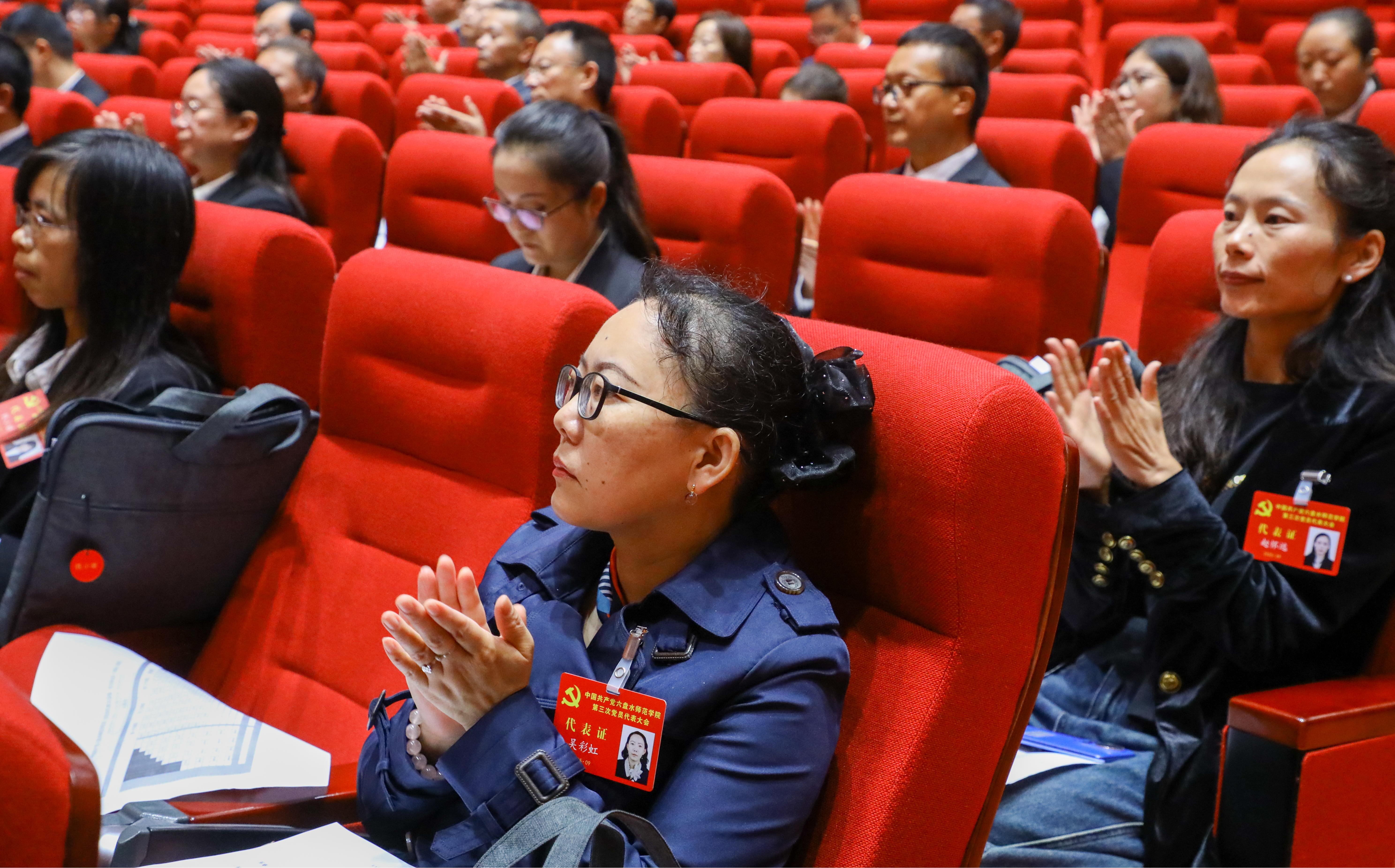 与会代表们精神饱满,认真听取了报告。本次大会会期两天半,与会代表将听取和审查中国共产党六盘水师范学院第二届委员会报告并选举产生中国共产党六盘水师范学院第三届委员会。(供稿/文 徐超 图 徐超 杨忠兰 樊国栋 吴晶钰 编辑校对/王良豪 审核/王薇)