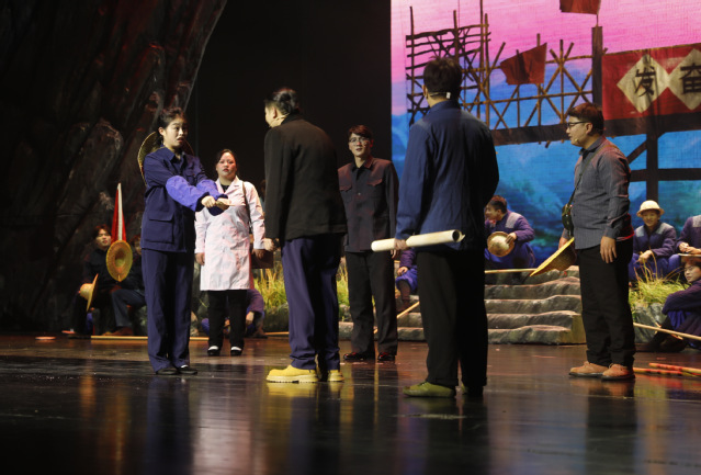 2024年12月20日,由贵州省委宣传部、贵州省文化和旅游厅、贵州省文学艺术界联合会主办,贵州省文化演艺集团承办,六盘水市委宣传部、六盘水市文体广电旅游局协办,贵州省演出公司、六盘水市文化馆、贵州文化体育运营管理有限公司执办,六盘水师范学院艺术学院演出的三线建设题材大型舞台剧《乌蒙长歌》在六盘水市凉都大剧院演出。(供稿/杨杰 编辑校对/周海云 审核/吴胜柱)
