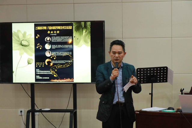 为深化校际合作、推动音乐教育高质量发展,4月10日下午,上海音乐学院、贵州大学与六盘水师范学院在乐学楼二楼阶梯教室联合举办艺术交流活动。此次活动由六盘水师范学院党政办和艺术学院主办,邀请了上海音乐学院声乐歌剧系刘芳瑛和贵州大学音乐学院朱亚禄等专家学者。艺术学院党政领导、各科室、音乐系师生200余人参加了此次活动。(供稿/班仕俊 张曼 曾伦婧 编辑校对/周海云 审核/吴胜柱)