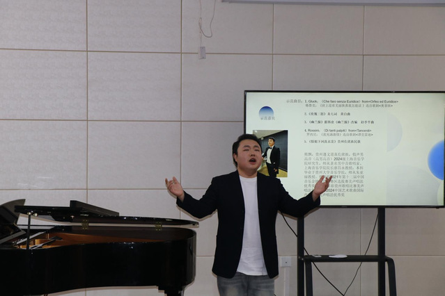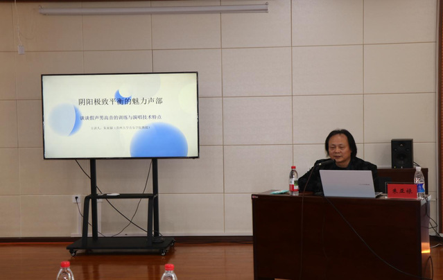 活动期间,学术讲座成为焦点。贵州大学音乐学院朱亚禄教授以《阴阳极致平衡的魅力声部——谈谈假声男高音的训练与演唱技术特点》为题,深入剖析假声男高音的艺术价值。朱教授结合经典歌剧选段与教学案例,现场演示气息控制,强调“阴阳平衡”理念在声乐训练中的核心地位。互动环节中,六盘水师范学院学生踊跃提问,朱教授逐一解答,鼓励学生积极探索多元化演唱风格。