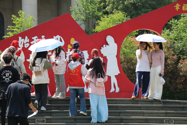 本次活动的开展,一个个身穿红马褂的志愿者穿梭在健步走赛道,他们沿途设置了“补给站”,为师生提供指引、饮水、打卡等服务,为活动圆满完成提供了保障。