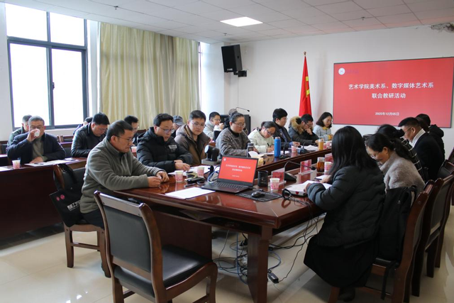 12月5日下午2:30,艺术学院美术学与数字媒体艺术联合教研活动在奥学楼906顺利举办。学校党委书记胡兴灿、教务处副处长廖雯、组织部谭龙云,学校教学督导组黄萍、于格、杨笛,学院领导及两个专业全体教师共同参与此次活动。活动围绕“发挥专业优势,深耕文化形象塑造与文创产品开发利用”主题,通过主题发言、专题研讨、点评等环节,凝聚发展共识,助力教学质量与人才培养质量提升。(供稿/新闻中心 编辑校对/周海云 审核/张俊霞)